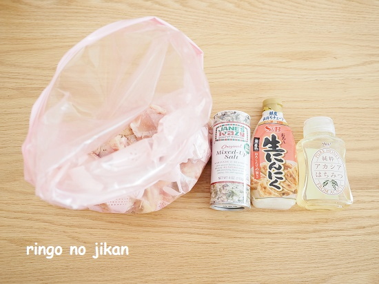 味付けはクレイジーソルトとニンニクとハチミツです。