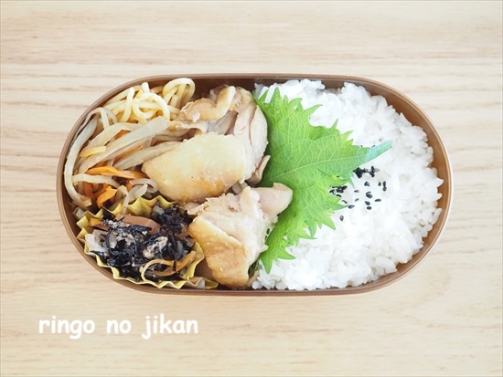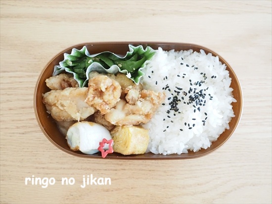 土曜に夫が作ってくれた晩ご飯のから揚げを、そのままお弁当にIN!