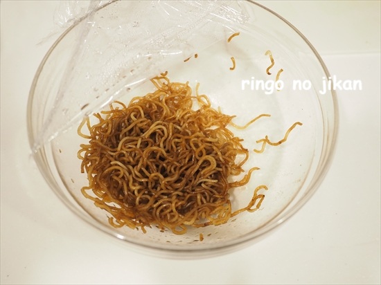 細麺でしーちゃんの要望と合致しているし、レンチンでいけるのでめちゃめちゃ使い勝手いいです!
