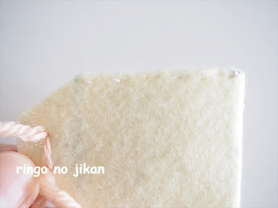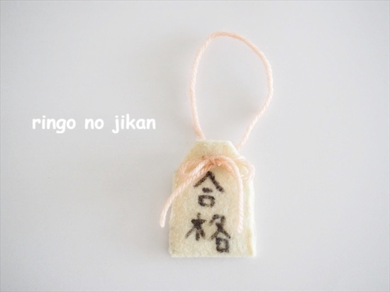 フェルトを持ち出し、御守りの形にハサミで切って、ひたすらチクチク。